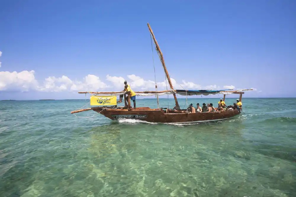 The return trip to Fumba is by sail, wind permitting, and guests typically arrive back at their hotels around 17:30 (5:30 pm). Before the tour begins, participants receive a short briefing covering the day’s program and safety guidelines. The dhows used for Safari Blue are hand-built from African mahogany and maintained to the highest standards. These locally constructed sailing vessels are fitted with outboard motors, marine VHF radios, life jackets, and other essential safety equipment, ensuring a safe and comfortable day on the water.