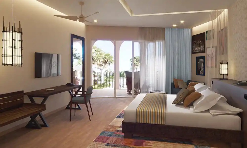 The resort features 250 suites across seven categories, blending Africa’s ethnic roots with contemporary design while offering all modern comforts. Each suite is a curated retreat designed to provide a true escape from reality, with a strong focus on environmental preservation. Guests can choose between suites with lush tropical garden views or ocean views. Five suites feature private pools, and eighteen offer private jacuzzis.